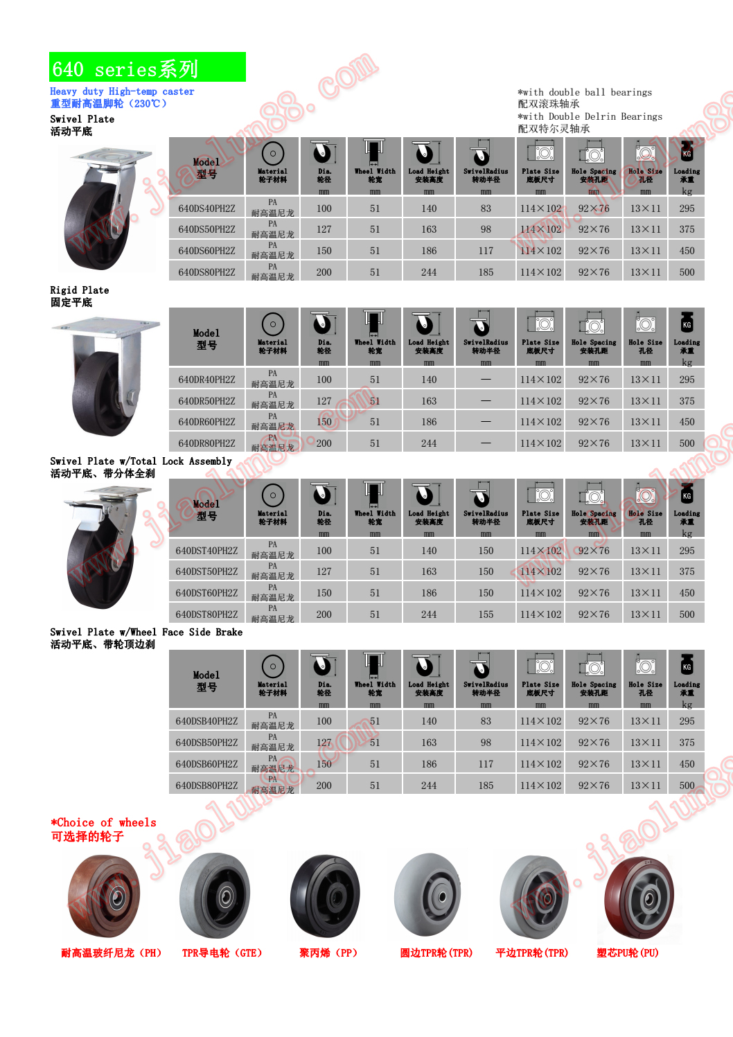 ◆ 輪子直徑:¢100mm(4寸)、¢125mm(5寸)、¢150mm(6寸)、¢200mm(8寸)。