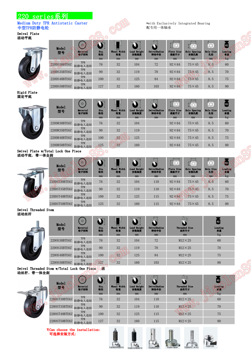 ◆ 輪子直徑:¢75mm(3寸)、¢90mm(3.5寸)、¢100mm(4寸)、¢125mm(5寸)。