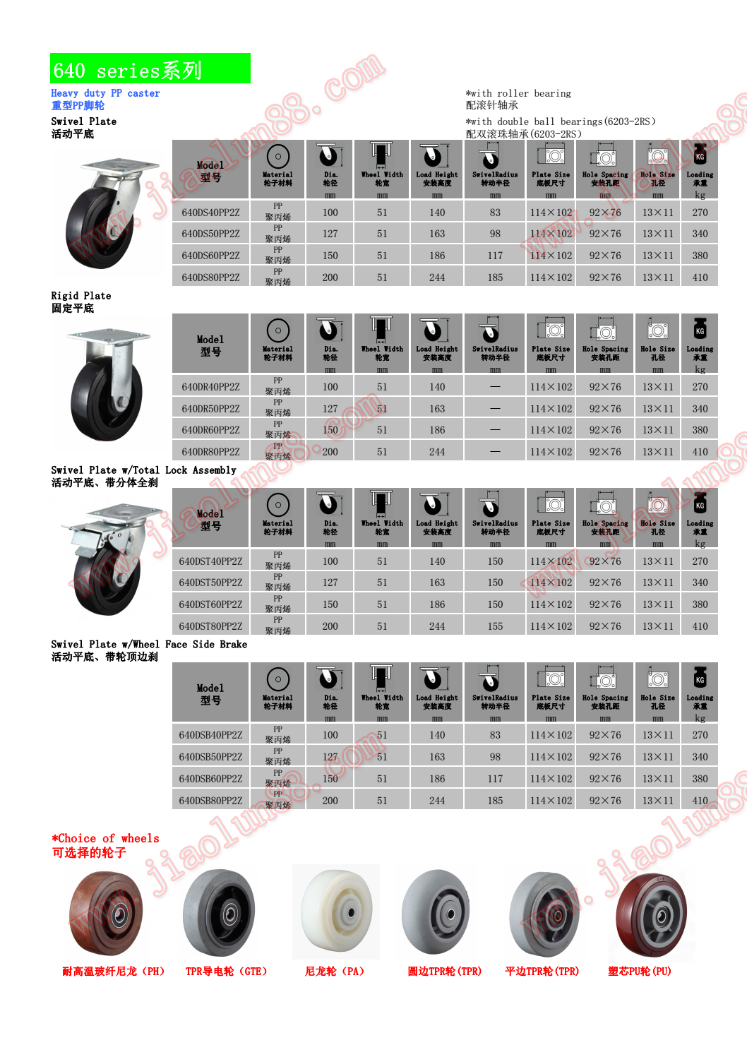 ◆ 輪子直徑:¢100mm(4寸)、¢125mm(5寸)、¢150mm(6寸)、¢200mm(8寸)。