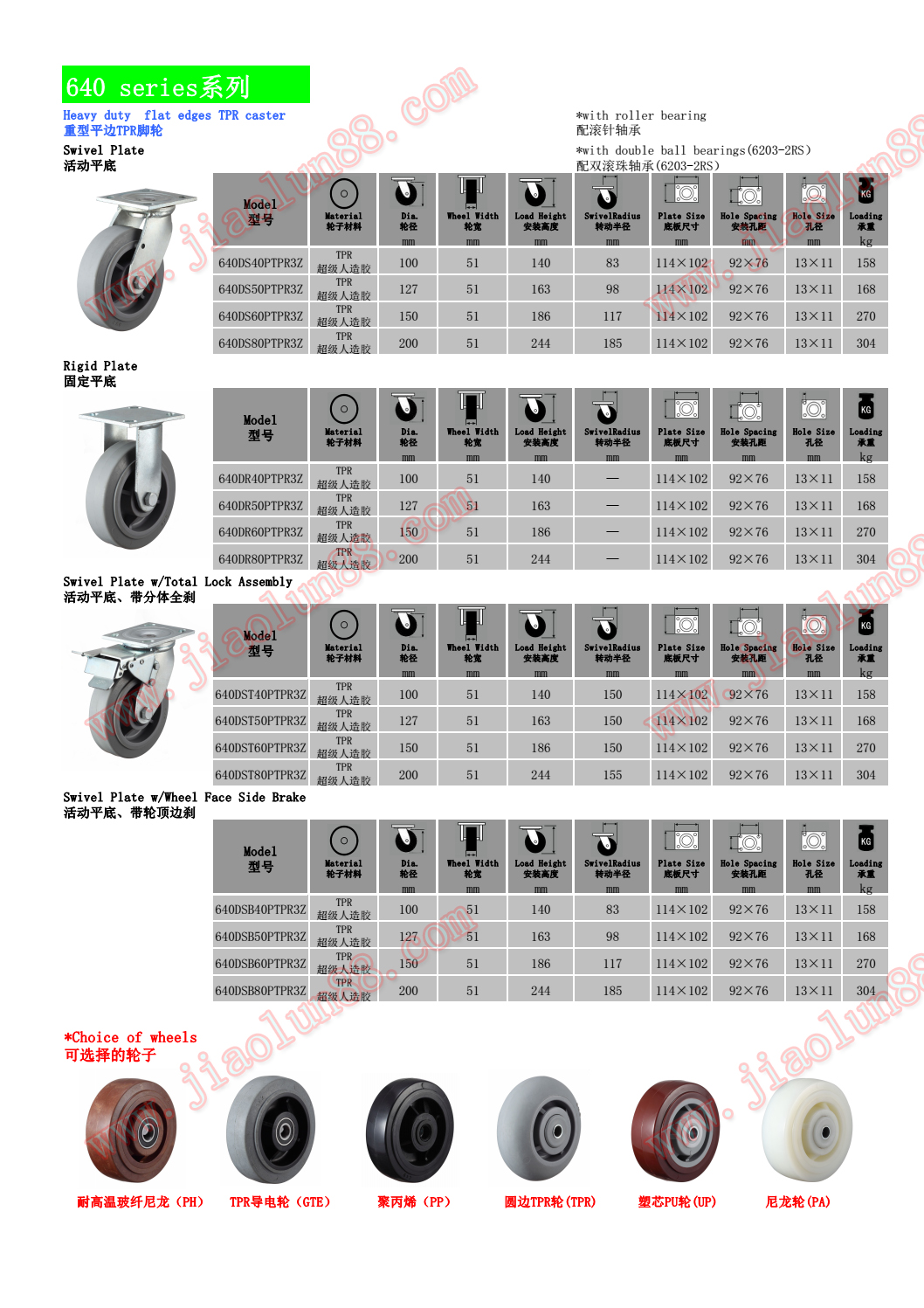 ◆ 輪子直徑:¢100mm(4寸)、¢125mm(5寸)、¢150mm(6寸)、¢200mm(8寸)。