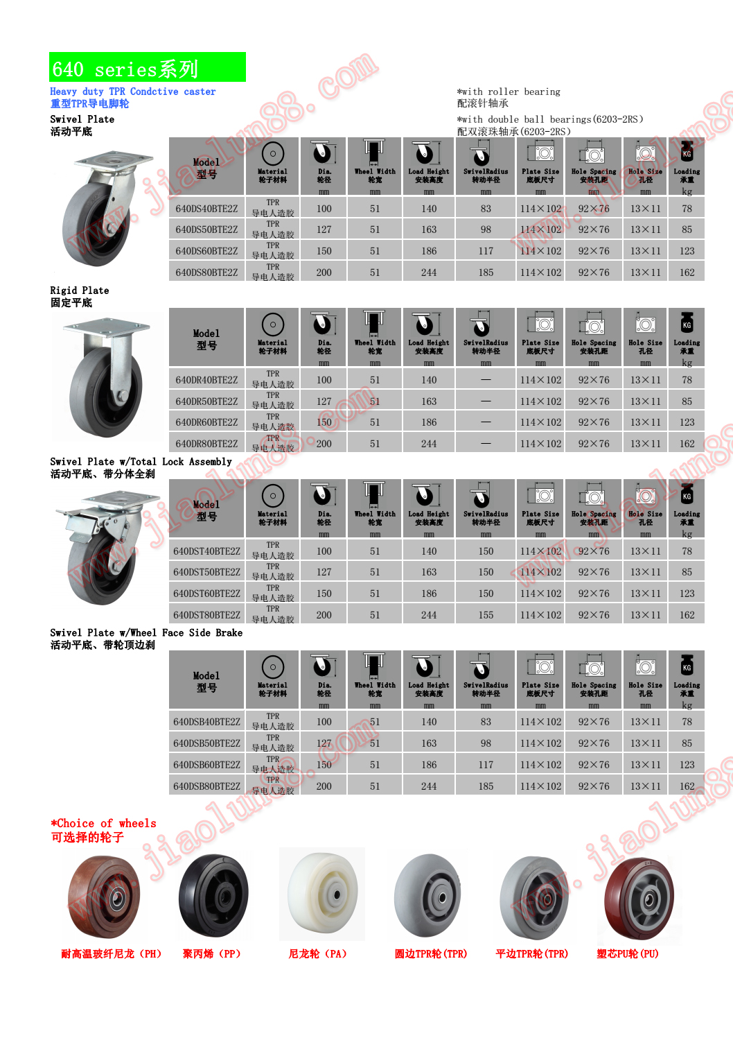 ◆ 輪子直徑:¢100mm(4寸)、¢125mm(5寸)、¢150mm(6寸)、¢200mm(8寸)。