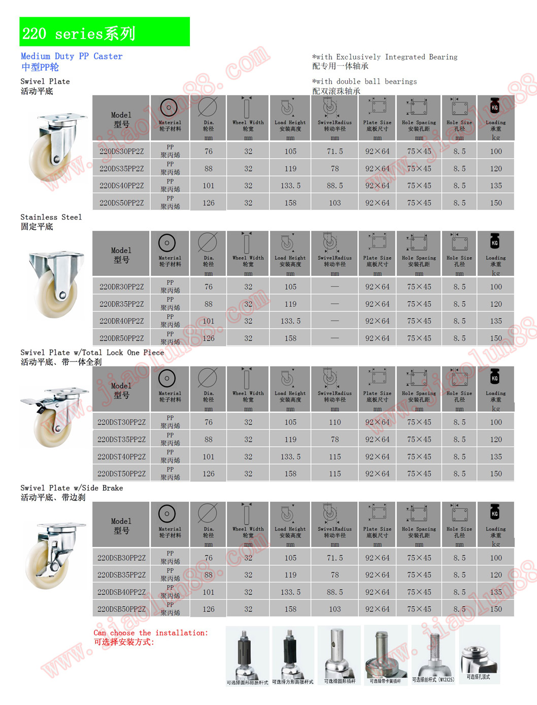 中型尼龍腳輪參數(shù)特點:(單輪最大承載155公斤)