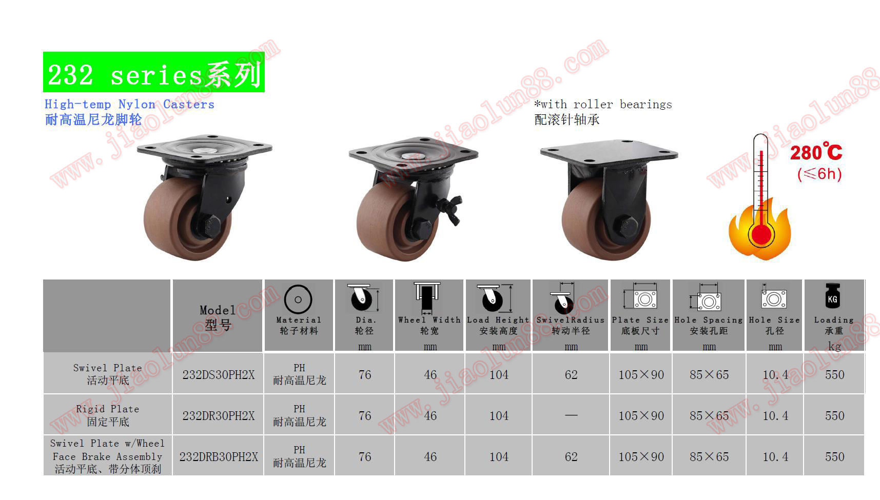 低重心耐高溫腳輪參數(shù)特點(diǎn):(單輪承載550公斤)