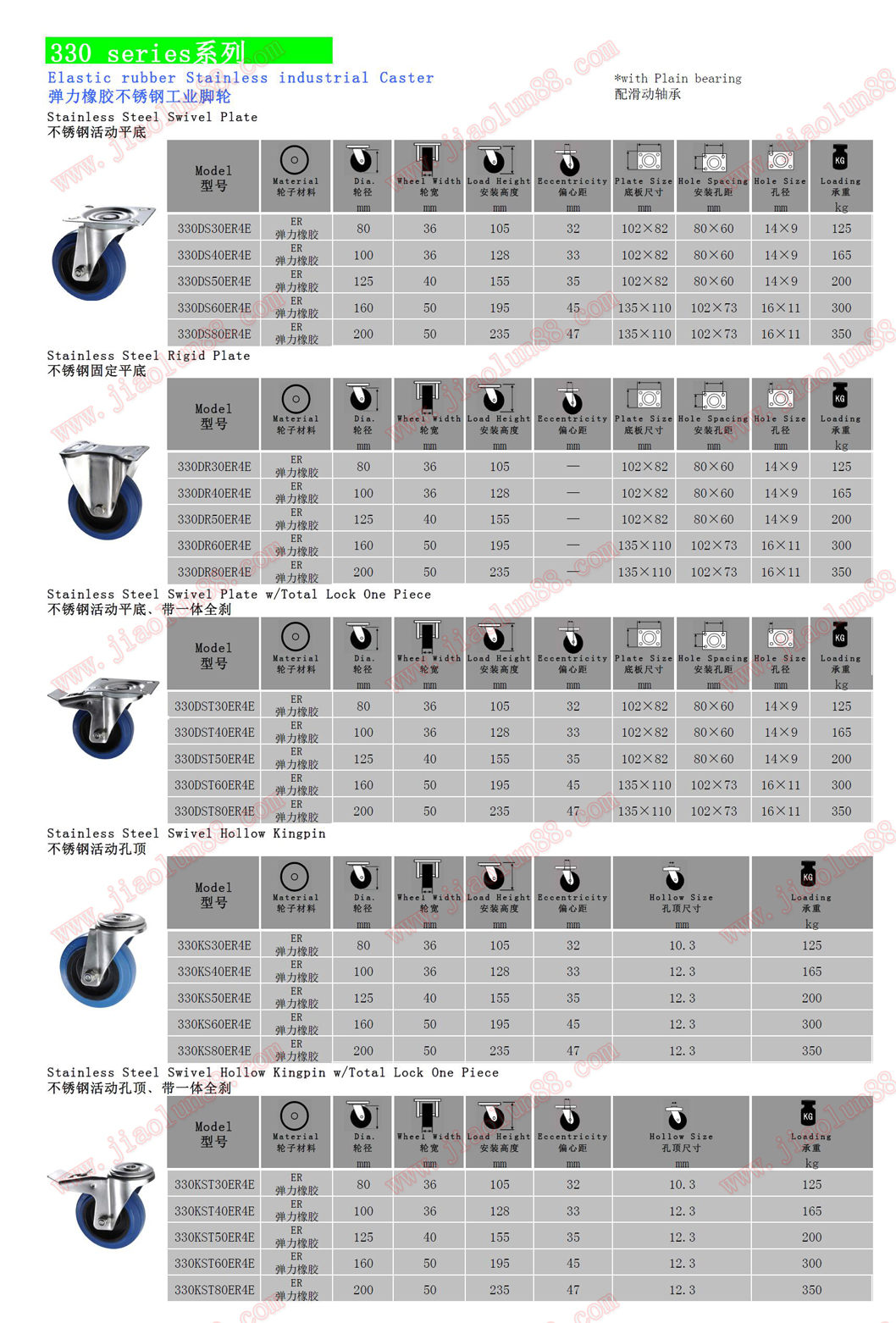 ◆ 輪子選配:全不銹鋼、尼龍、聚氨酯(PU)、超級人造膠(TPR)、耐高溫耐低溫、導(dǎo)電防靜電等。