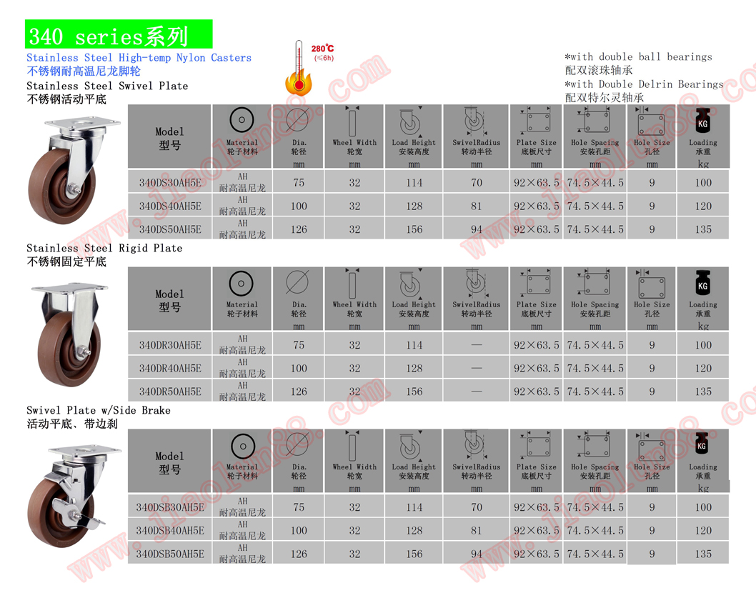 ◆ 輪子選配:全不銹鋼、尼龍、聚氨酯(PU)、超級(jí)人造膠(TPR)、耐高溫耐低溫、導(dǎo)電防靜電等。