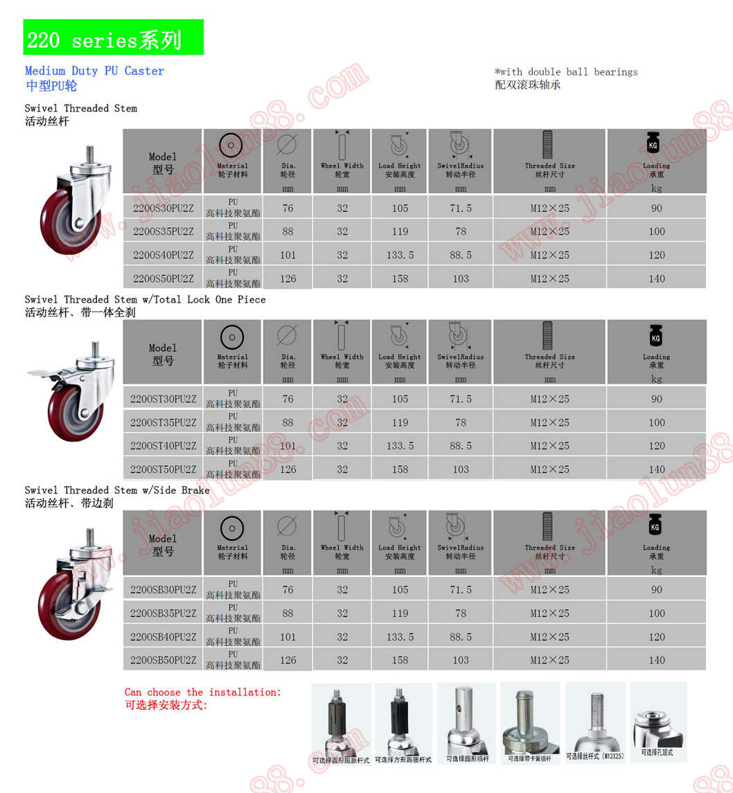 ◆ 產(chǎn)品規(guī)格:萬向、固定、絲桿、萬向帶雙剎(同時鎖住支架和輪子)、孔頂、插桿、膨脹式。